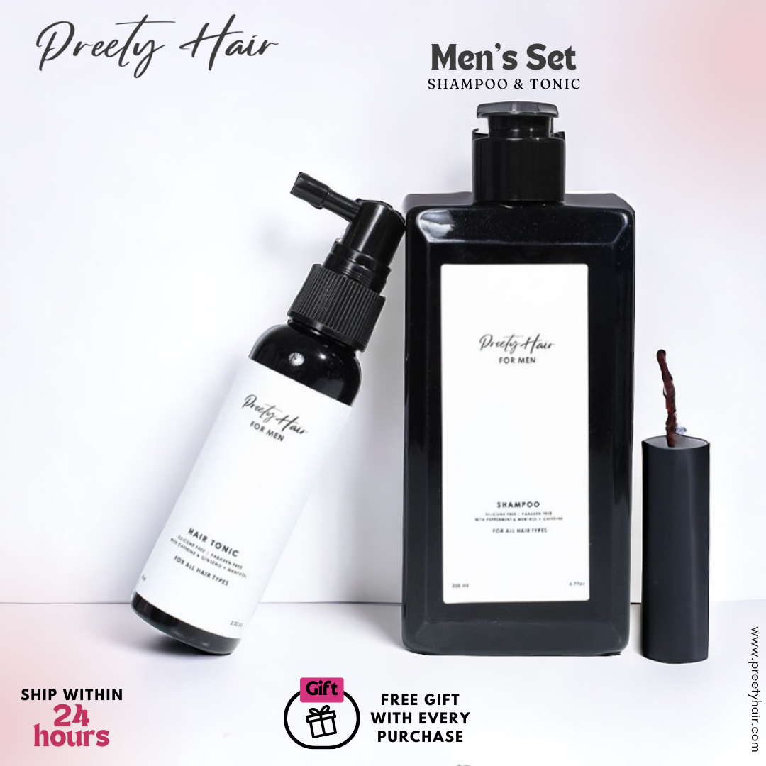 Prevent hair loss with Preety Hair Anti-Hair Fall Shampoo that integrates premium ingredients to reduce hair fall and promote cell regeneration and stimulate hair regrowth. Infused with the best formula to help boost your hair and scalp health by activating the stem cells in your hair follicles. It leaves your hair looking fuller, day after day.